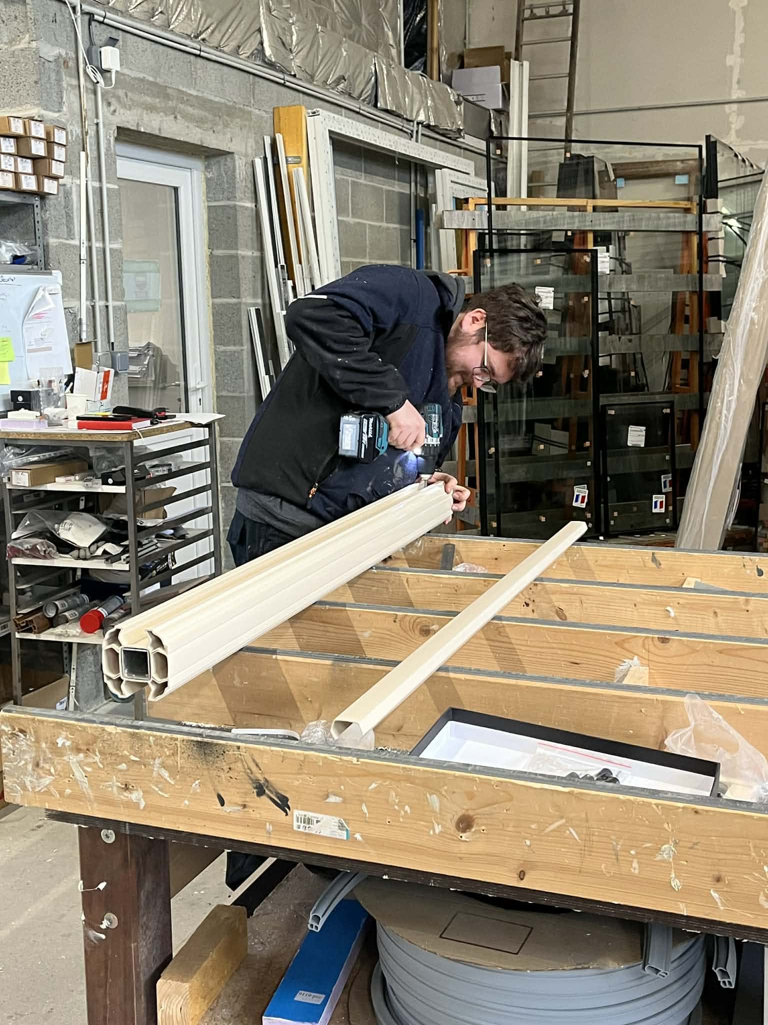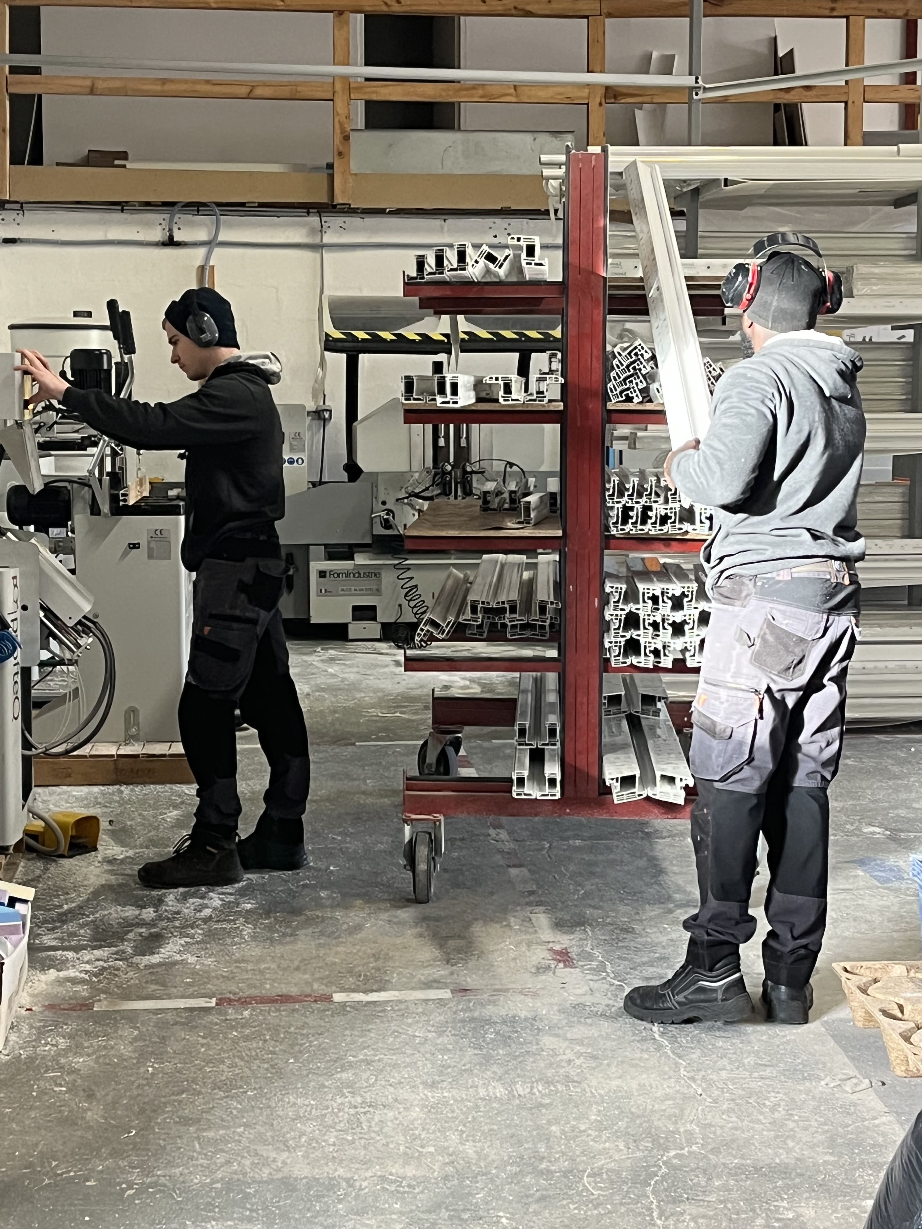 • Pose manuelle des quincailleries et des renforts en acier.