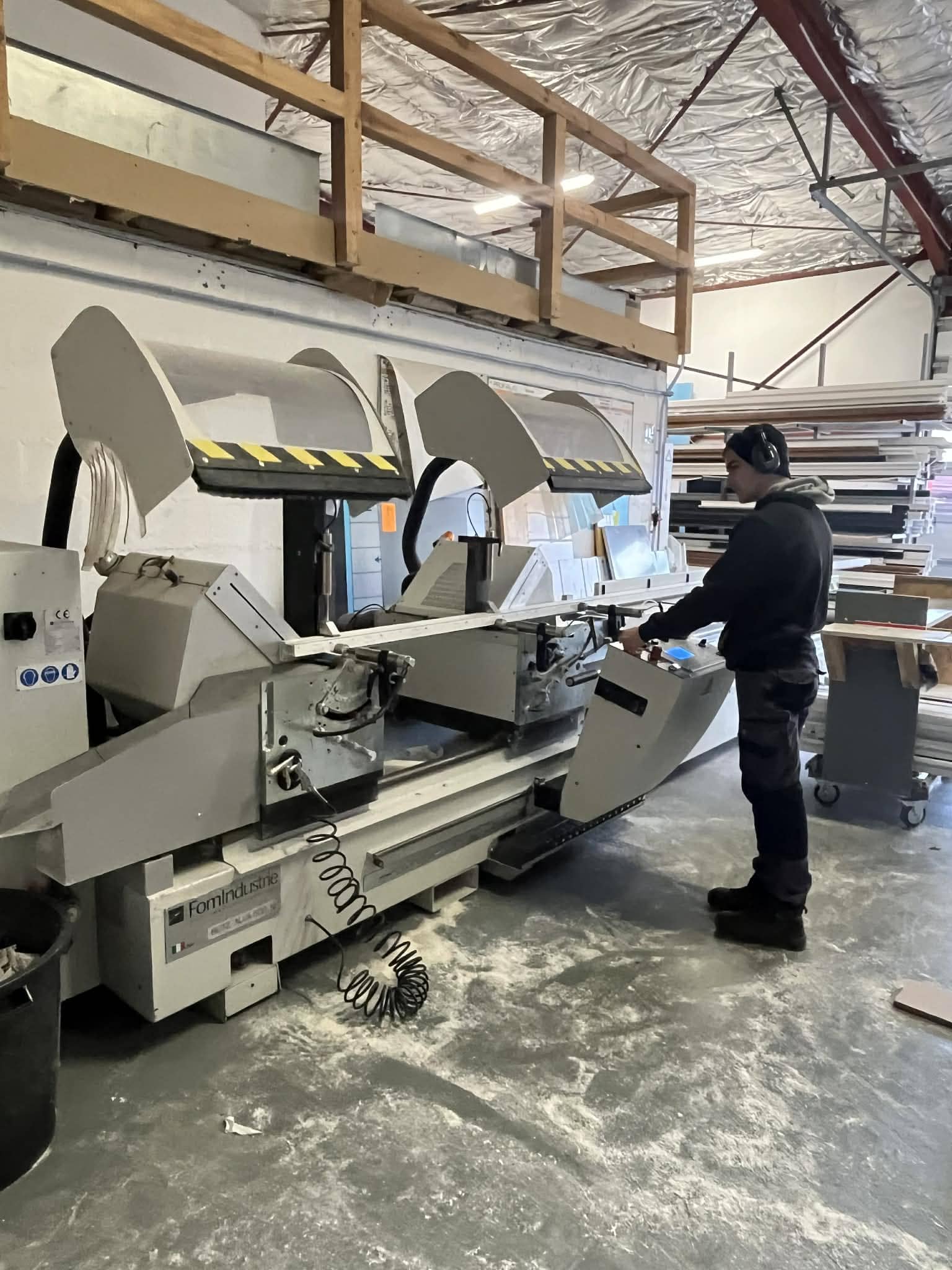 Tout commence par une découpe millimétrée. Notre scie à deux têtes nous permet de réaliser des coupes d’onglets simultanées avec une inclinaison parfaite.
